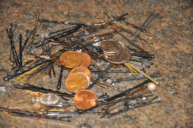 I wasn't surprised that he found mounds of lint clogging the system. However, as you can see in the photo, he also found enough bobby pins for the up-dos for an large wedding party! I think this revelation probably left Joe and Speedy that much more thankful that we also just added one more boy to the mix with this adoption! For a long time on Sunday mornings, they have voiced their concern that their lives will be shortened as a result of all the hair spray they're forced to inhale living with so many females (and that was before we just added two more!)