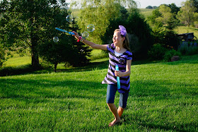 On this play date, we took out giant bubble wands I'd recently found at Target. For this fun, we borrowed our neighbor's yard. For twelve years now he has kindly allowed us to use his land whenever we'd like. As you'll see in these pictures, his yard has to be one of the most picturesque spots on the planet, especially near sunset.